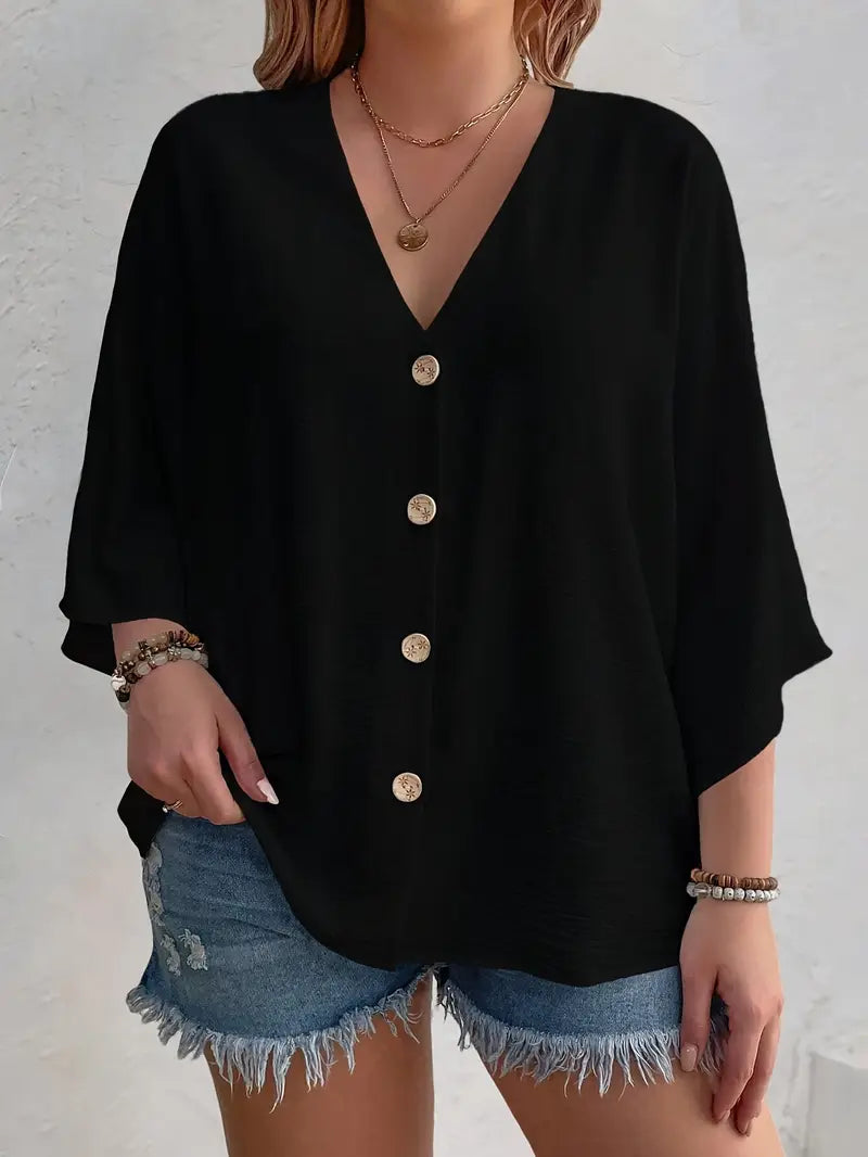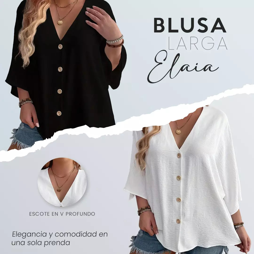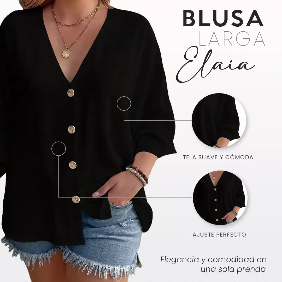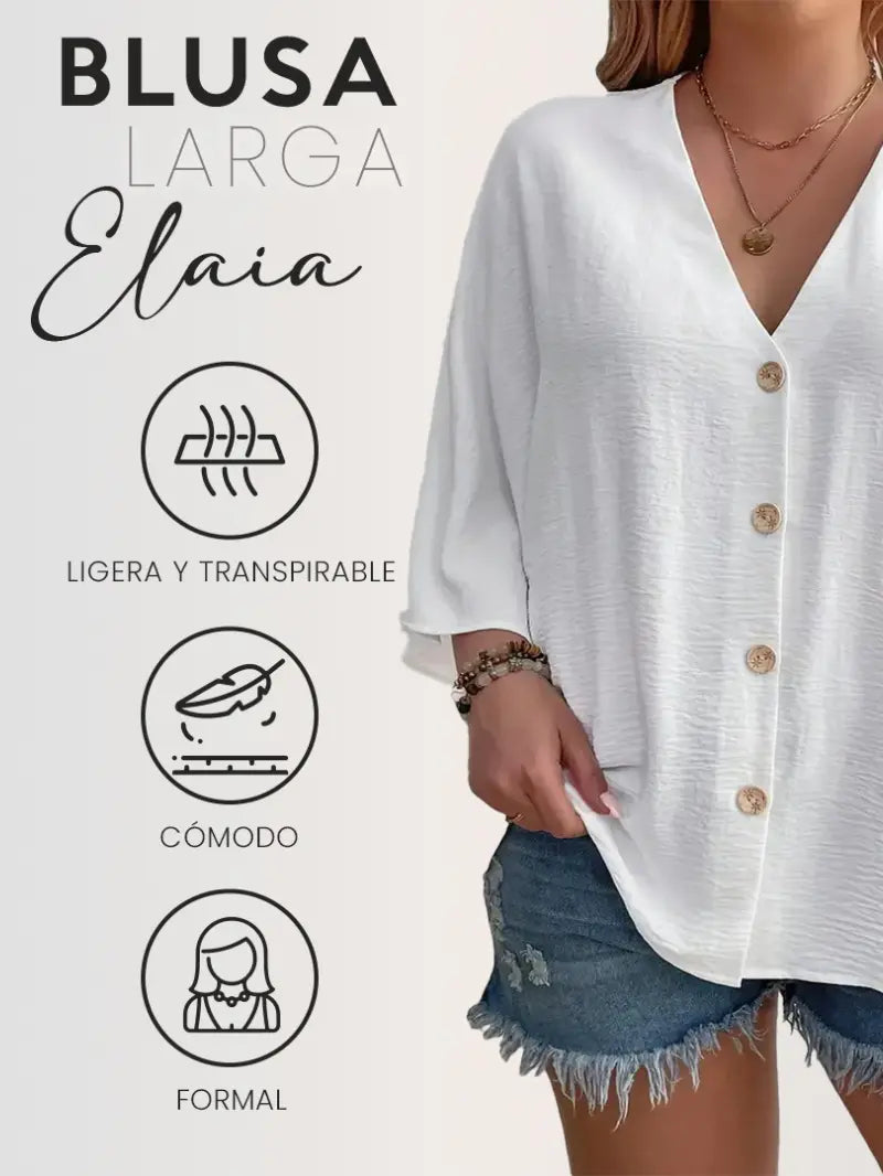 La Blusa™ - Cuello V Manga Larga Elaia combina un diseño sofisticado con un ajuste cómodo y favorecedor. Perfecta para cualquier ocasión, realza tu estilo sin esfuerzo.